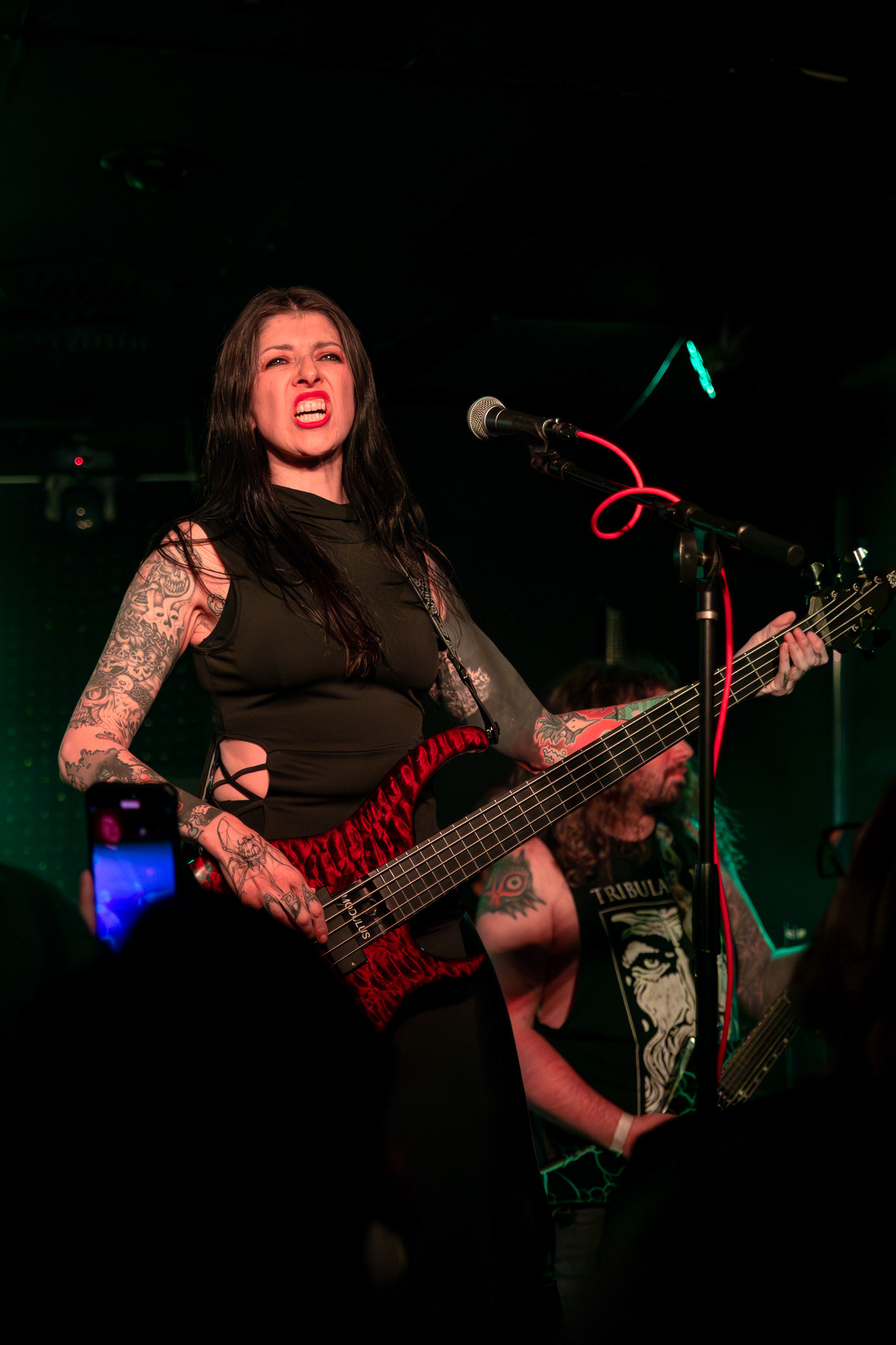 to kick off a powerful set and get the crowd fired up for, “The 6th Omen.” The intensity put off by the band really reflected in the crowd with everyone head banging along. Watching Morgan seamlessly shift from low growls to high cleans was nothing short of impressive.